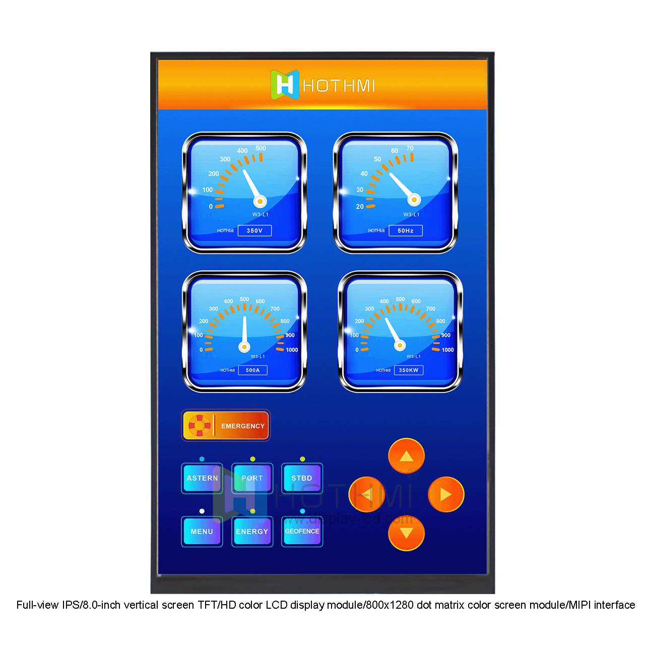 這款 8.0 英寸 IPS TFT LCD 顯示屏具有800X1280 像素的高分辨率和內(nèi)置 EMI 屏蔽。這款 TFT 包含一個 500 尼特的高亮度 LED 背光。由于這款液晶顯示屏內(nèi)置了 IPS 技術,這款顯示屏具有驚人的清晰度、卓越的色彩還原、更好的圖像一致性和全視角高對比度。超亮背光使這款 TFT 在陽光直射等明亮條件下也能清晰顯示。
